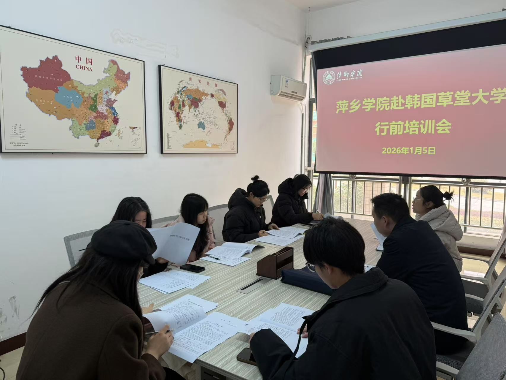 1月5日下午,我校在国际教育与交流中心会议室召开2025-2026学年寒假赴韩国草堂大学师生行前教育培训会。为切实保障交流活动安全有序开展,本次会议特别邀请出入境相关负责人员莅临指导,国际教育与交流中心全体成员全程参与,7名即将赴韩的交流师生悉数到场接受培训。